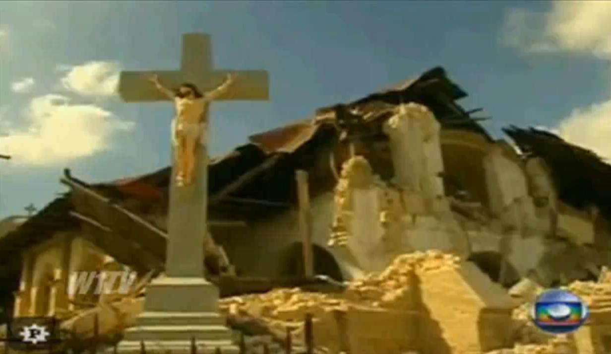 IGREJA DESABA E CRUZ COM JESUS FICA INTACTA APÓS TERREMOTO NO HAITI